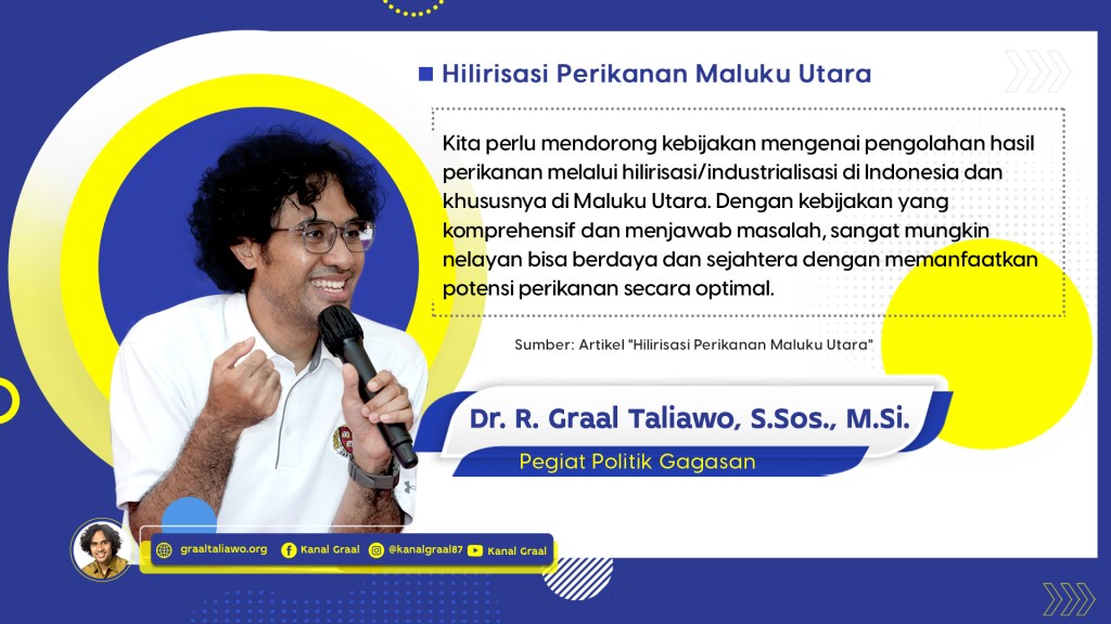 POTENSI perikanan Maluku Utara tidak diragukan, bahkan digadang sebagai poros maritim nusantara. Peluang ekonomi tersaji di depan mata. Namun, ada berbagai tantangan yang menanti diselesaikan. Perlu ada kebijakan komprehensif dari hulu hingga hilir supaya kita bisa berdaya dan sejahtera melalui sektor perikanan yang melimpah ini. Hilirisasi/industrialisasi perikanan layak menjadi master plan. Ini bisa mendatangkan manfaat yang luar biasa bagi masyarakat Maluku Utara dan Indonesia umumnya.