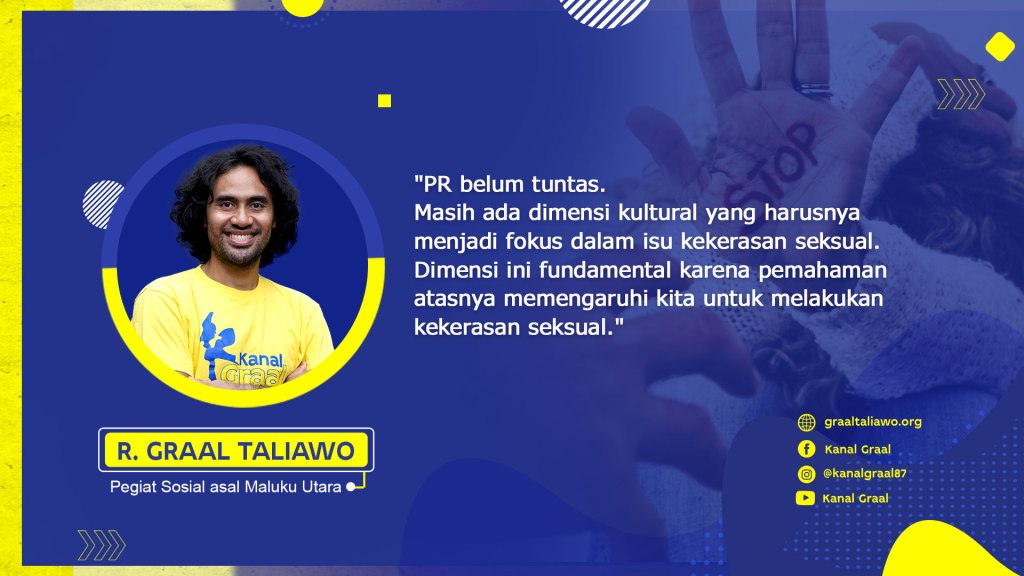 PR belum tuntas. Masih ada dimensi kultural yang harusnya menjadi fokus dalam isu kekerasan seksual. Dimensi ini fundamental karena pemahaman atasnya memengaruhi kita untuk melakukan kekerasan seksual. Kita perlu memperbincangkan solusinya supaya penyebab asali kekerasan seksual ini tidak direalisasikan.
