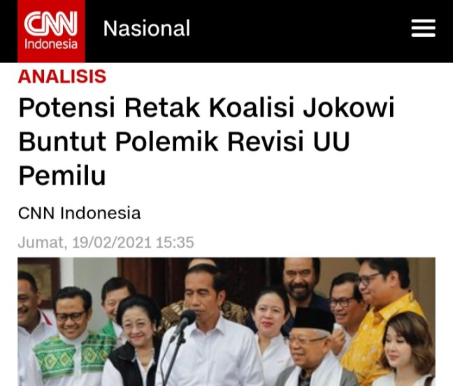 *Artikel ini merespons isu atas artikel “Potensi Retak Koalisi Jokowi Buntut Polemik Revisi UU Pemilu” dalam cnnindonesia.com, 19/02/2021.